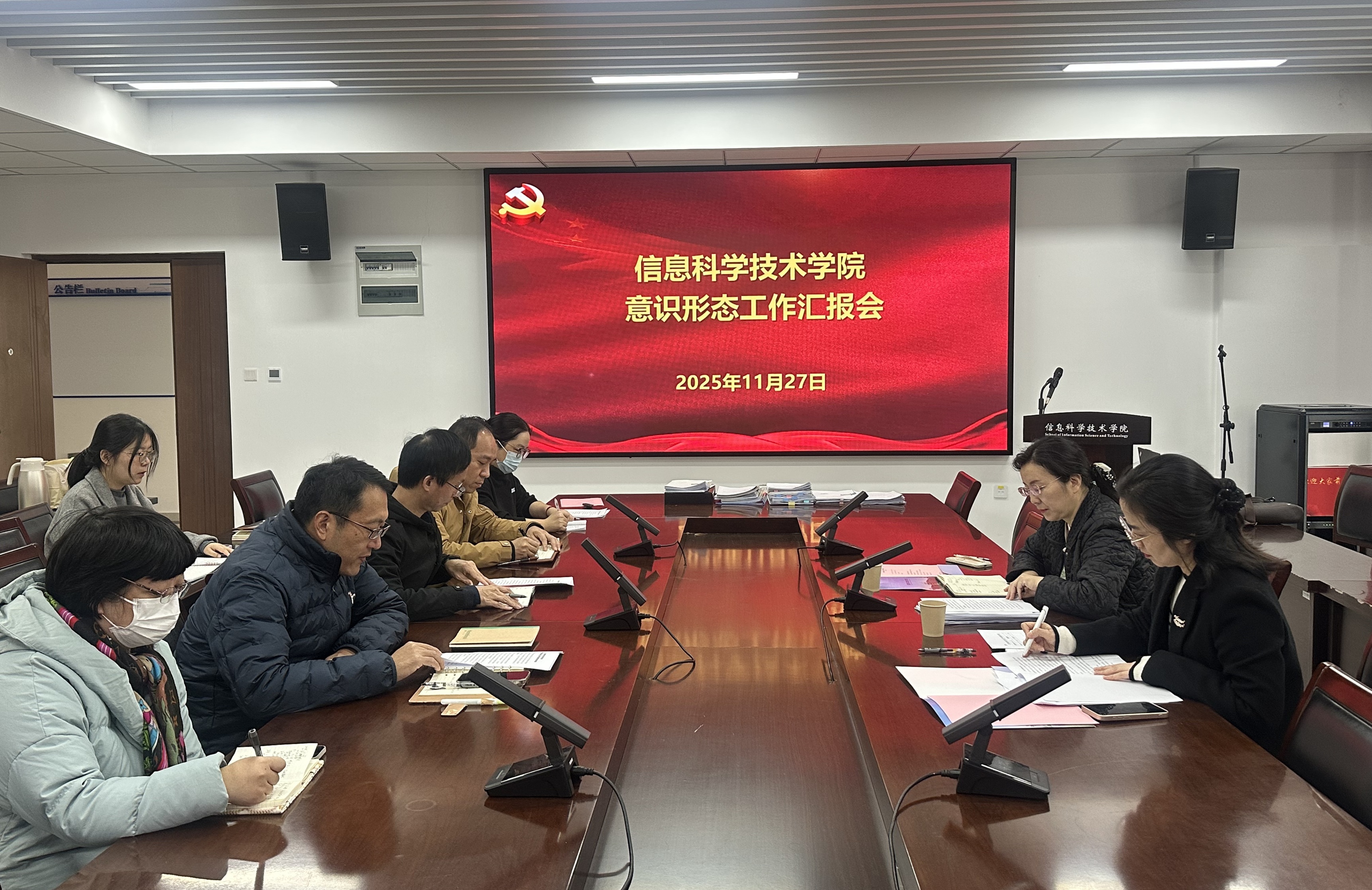 在听取汇报后,检查组查阅了工作台账,并与参会人员进行了座谈交流。刘艳充分肯定了学院在意识形态工作方面所做的工作,就进一步规范开展工作、压实学院班子成员责任、加强风险点排查、严格阵地管理等方面提出了指导性意见。