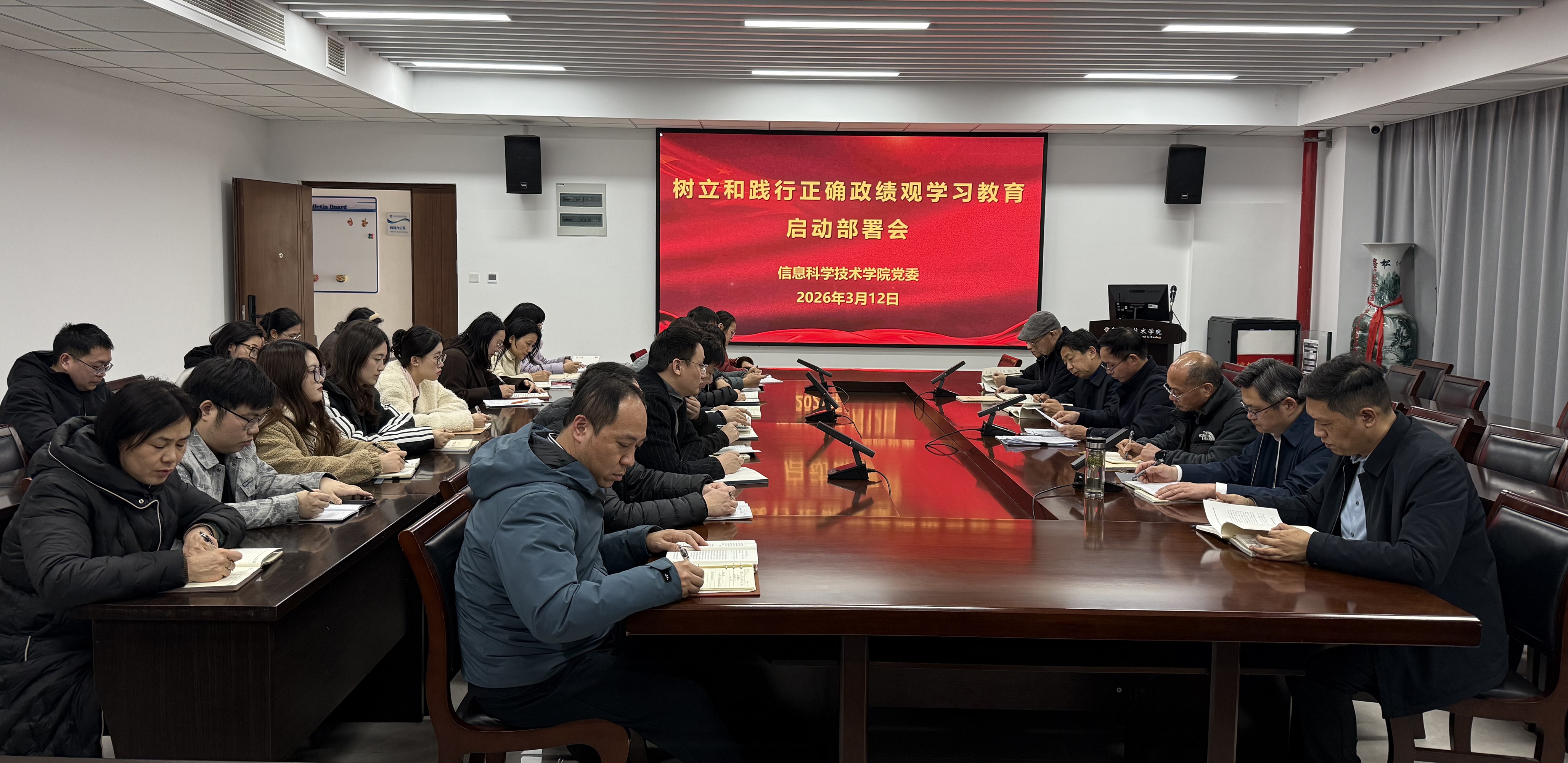 3月12日,公司党委召开树立和践行正确政绩观学习教育启动部署会。学院及智能信息技术研究中心班子成员、党委委员、党支部书记、系室负责人参加会议。公司党委书记周平主持会议。